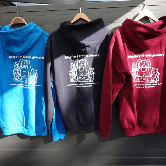 Die Kapuzen-Sweatshirtjacke ist ein toller Alltagsbegleiter an kühlen Tagen, wenn es für ein Shirt zu kalt und für einen Wollpullover zu warm ist. Mit unserem Motiv 2025 ‚Adopiert – nicht gekauft!‘ können Tierfreunde nicht nur modisch schick in die Schule, Uni oder ins Büro gehen, sondern gleichzeitig auch ein Statement setzen und zeigen, worauf es im Tierschutz und im Leben ankommt. ‚Herkunft? Ungewiss. Rasse? Unwichtig! Zukunft? Gesichert!‘ Im Tierschutz ist die Vergangenheit der Tiere oftmals ein Rätsel. Mit Sicherheit haben alle ein Päckchen zu tragen und wir müssen sie im Hier und Jetzt abholen. Umso erstaunlicher ist es, was für liebenswerte und wundervolle Geschöpfe im Tierschutz zu finden sind.
