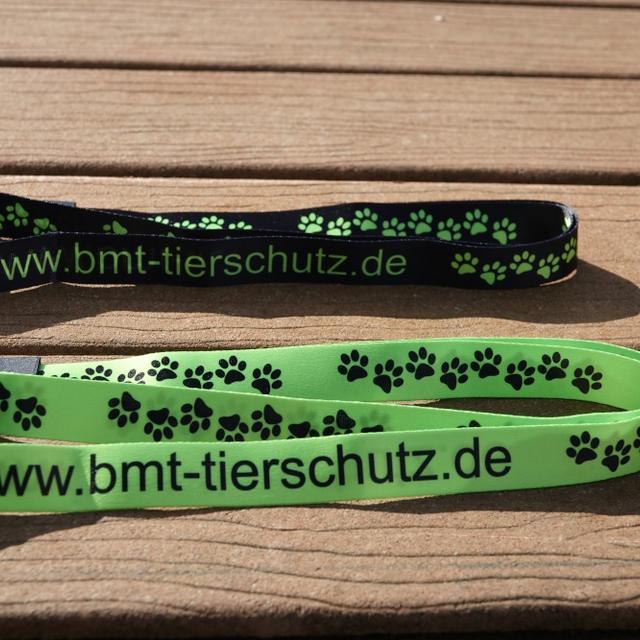 Das Schlüsselband gibt es in einem frischen Grün mit schwarzem Print oder in Schwarz mit grünem Aufdruck.