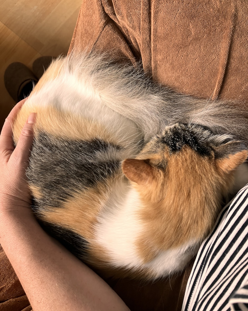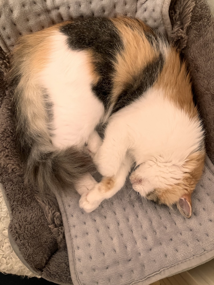 Trotz ihrer körperlichen Einschränkungen hat sie sehr schnell Vertrauen gefasst und gleich den Kontakt zu uns gesucht. Wir wünschen uns für Blinky, dass die anstehende Augen OP gut verläuft und wir noch viel Zeit miteinander verbringen dürfen. Blinky kuschelt sehr gerne, schnurrt in ihrem Körbchen und erkundet aufmerksam ihr neues Zuhause.