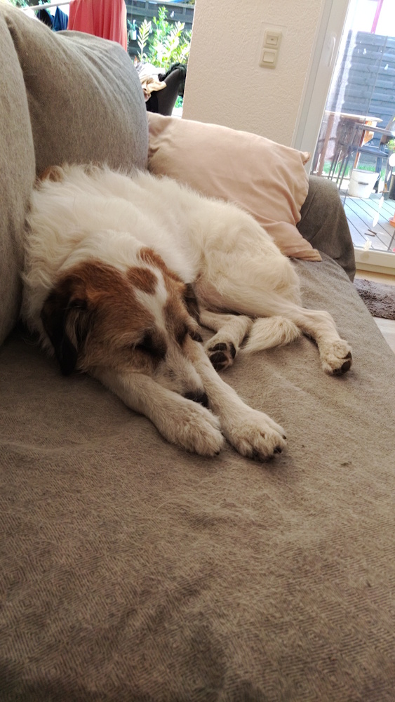 Unser Alltagsleben ist schön routiniert: wenn Frauchen zur Arbeit muss, hab ich vormittags entspannte Nickerchenzeit und bleibe super lieb alleine Zuhause, nachmittags ist "Home-Office", dann chille ich im Garten und beobachte Vögel und Nachbarn. Das Konzept von "Urlaub" fand ich erst ganz schön stressig, da soll ich mich an neue Orte gewöhnen, wo ich nichts kenne und dann fahren wir schon wieder nach Hause... Aber mittlerweile kann ich mit allen neuen Situationen und Orten so viel schneller und entspannter umgehen, dass ich auch Urlaub voll genießen kann. Guckt euch die Fotos an, ich bin schon am Strand rumgetobt und bin in den Bergen gewandert! Macht mit Frauchen zusammen alles richtig Spaß! :-) Und seit neuestem habe ich einen Gassiservice und gehe einmal in der Woche mit anderen Hundekumpels in den Wald, wenn Frauchen arbeiten ist. Das hab ich direkt super mitgemacht und mich schon voll in meine "Mittwochs-Gang" integriert :-)