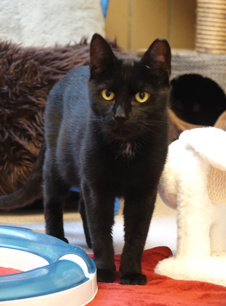 Was für uns Dosenöffner sehr hilfreich ist, ist dass alle vier Samtpfoten sehr verfressen sind. Malea und Juria trauten sich als Erste aus ihrem Versteck heraus, Andrina brauchte ein bisschen länger, aber sobald sie merkt, dass es was Leckeres zu fressen gibt, ist Andrina Feuer und Flamme. Liebe geht halt durch den Magen! So legt sie ihre Anfangsschüchternheit schnell ab, wenn sich etwas Fressbares in der Nähe befindet. Ist ihre Neugierde erst einmal geweckt, dann traut sie sich jeden Tag ein bisschen mehr. Wir sind uns sicher, dass es eine Frage der Zeit ist, bis sie sich ihren Menschen anschließt,