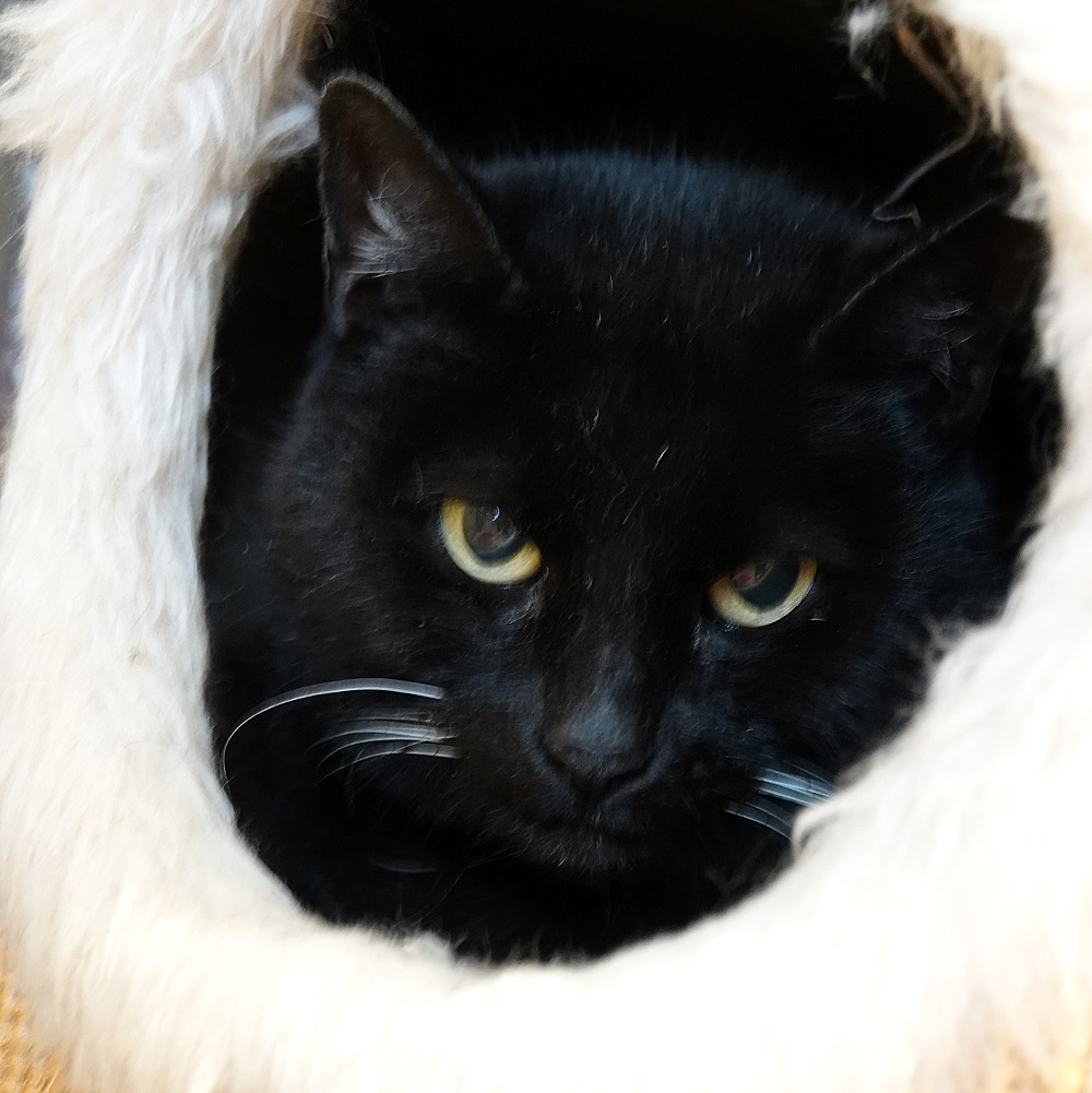 Binx ist eine pechschwarze Katzenlady, die als Fundkatze im Tierheim abgegeben wurde, nachdem sie über mehrere Wochen in einem Hinterhof gefüttert wurde. Leider war sie weder kastriert noch gechippt, als sie im Tierheim ankam. Dies wurde natürlich gleich nachgeholt. Und bei der Kastration wurde der Nabelbruch gleich mitoperiert. Vermutlich war Binx in ihrem bisherigen Leben eine Streunerin und hat sich auf der Straße durchgeschlagen. Im Vermittlungszimmer zieht sie sich in ihre Höhle zurück und gibt ihren Mitbewohnern deutlich zu verstehen, dass sie keinen Kontakt wünscht. Wir denken, dass sie ein Freigeist ist und in ihrem zukünftigen Zuhause gerne draußen unterwegs ist. Aber auch freiheitsliebende Samtpfoten brauchen einen sicheren Hafen und einen solchen suchen wir für Binx. Sie ist mit Sicherheit keine Schmusekatz und daher denken wir, dass ihre Menschen über Katzenerfahrung verfügen und keine kleinen Kinder im Haushalt leben sollten. Ihre Zuhause sollte natürlich in einer katzenfreundlichen Umgebung fernab von Straßen- und Schienenverkehr liegen, so dass Binx nach Herzenslust auf ausgiebige Erkundungstouren und durch die nachbarschaftlichen Gärten streifen kann.