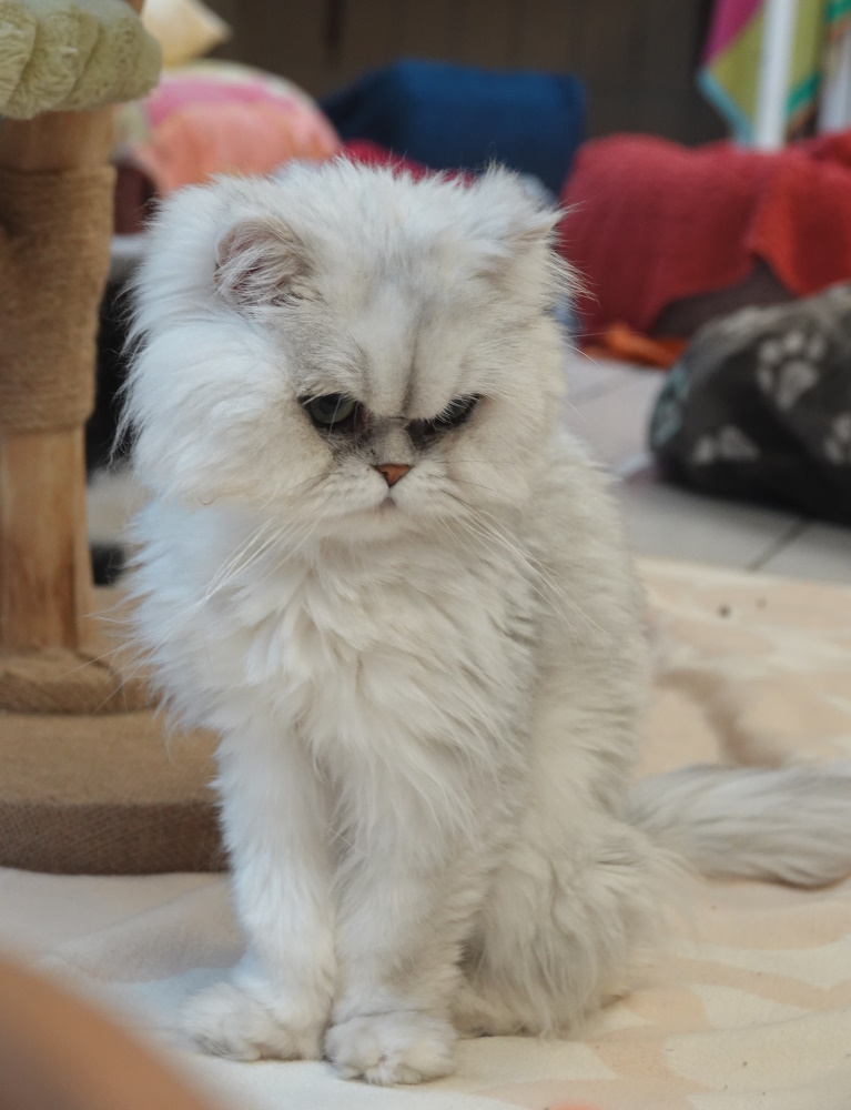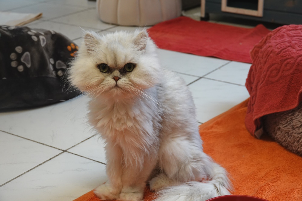 Da sein Fell ziemlich verfilzt war, als er in Rumänien ins Tierheim kam, haben es unsere Tierschutzkollegen geschoren. Aber es wächst ja zum Glück wieder nach, so dass er sicherlich bei der richtigen Fellpflege ein wunderschöner Perser wird. Seine Menschen sollten mit der aufwändigeren Fellpflege von Langhaarkatzen vertraut sein.