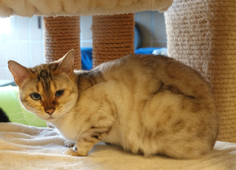 Kiwi ist eine attraktive Katzenlady, die als Fundtier aus Kassel-Forstfeld bei uns abgegeben wurde. Sie wurde aber von niemanden vermisst und war leider weder kastriert noch gechippt, als sie bei uns ankam. Dies wurde zwischenzeitlich natürlich nachgeholt. Es ist auffällig, dass in den letzten zwei, drei Jahren immer mehr Rassekatzen als Fundtiere bei uns abgegeben werden. Kiwi ist eine Bengalkatze und diese Rasse eignet sich nicht für Jedermann/frau bzw. für Anfänger. Bengalkatzen stecken voller Energie und Tatendrang, sind intelligent, verspielt und sehr selbstbewusst gegenüber Artgenossen. Und so legt auch Kiwi keinen Wert auf engen Kontakt mit ihren Artgenossen und weist diese in ihre Schranken, wenn sie ihr zu nahe kommen. Ihre neuen Besitzer sollten ihr auf jeden Fall genügend Beschäftigungsmöglichkeiten bieten, d.h. eine Kratzbaumlandschaft, die so einiges mitmacht, Intelligenzspielzeuge, Clickertraining und viel Zeit für die Samtpfote mit der außergewöhnlichen Fellzeichnung sind Voraussetzung für eine Adoption....
