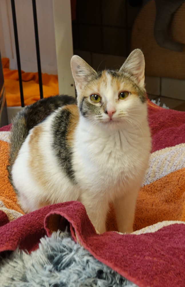 Alle Samtpfoten müssen, bevor sie in ihr neues Zuhause umziehen dürfen, allerdings noch eine tierärztliche Eingangsuntersuchung absolvieren. Aktuell leidet sie unter einer Augenentzündung, die in Behandlung ist.