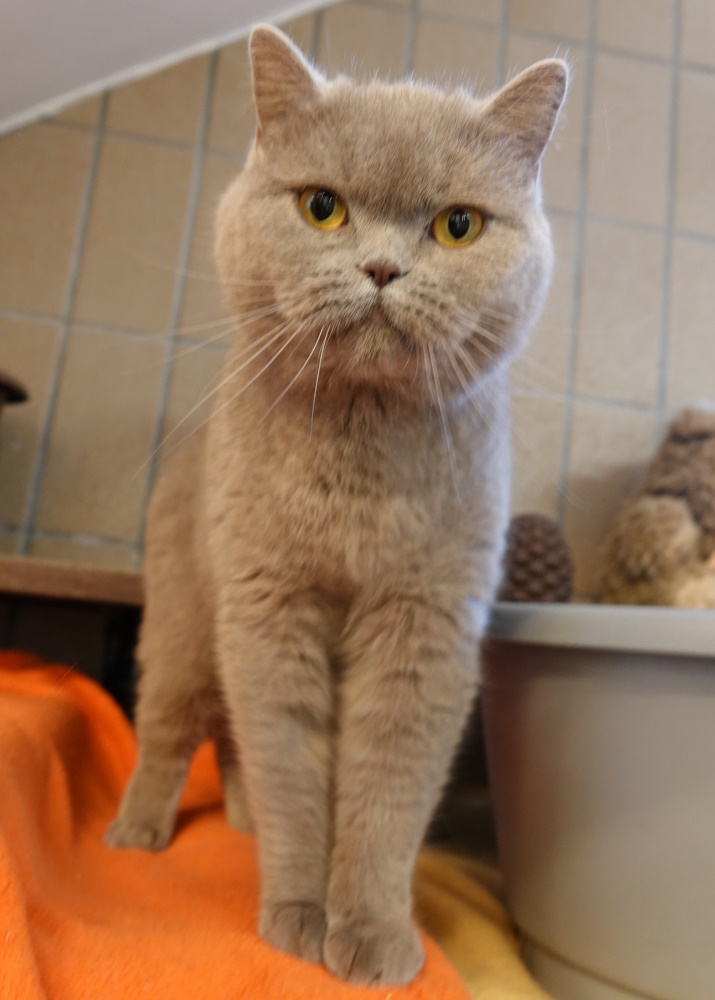 Nala ist eine bildschöne und dazu auch noch nette Britisch Kurzhaar-Lady, die als Fundtier bei uns abgegeben wurde, nachdem sie sich bereits zwei Wochen in der Obhut des Finders befand. Vielleicht war bekannt, dass sie nicht vermisst wird, denn dem ist unbegreiflicherweise so. Wir beobachten, dass in letzter Zeit immer mehr Rassekatzen als Fundtiere im Tierheim landen, die unterversorgt sind. So leider auch Nala, denn sie war weder gechippt noch kastriert, als sie abgegeben wurde. Dies wurde zwischenzeitlich natürlich nachgeholt. Im Vermittlungszimmer hält sie sich eher im Hintergrund auf und geht Streit aus dem Weg. Ob sie lieber Einzelprinzessin wäre oder sich auch ein Zusammenleben mit einer sozialen und netten Samtpfote vorstellen könnte, können wir leider aktuell noch nicht sagen.