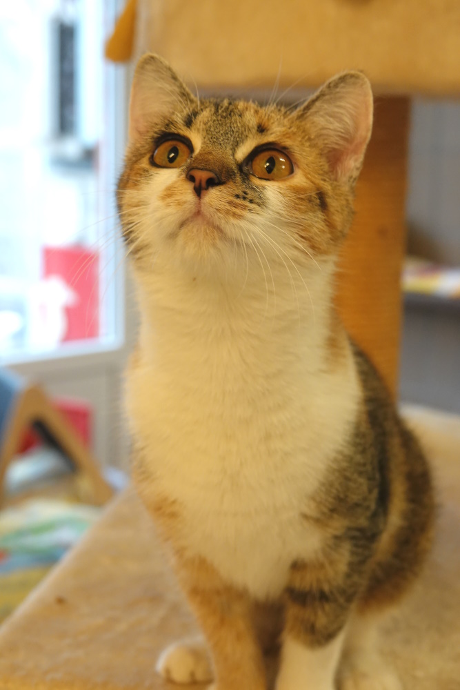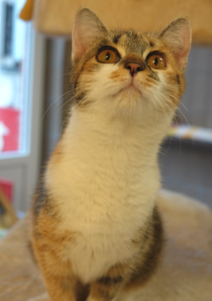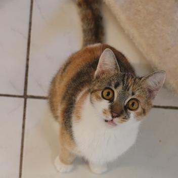 Sunny ist im wahrsten Sinne des Wortes eine Glückskatze: Zum einen natürlich aufgrund ihrer Fellfarbe (dreifarbige Katzen werden Glückskatzen genannt und sind immer weiblich ;-)). Zum anderen natürlich, weil zwei tierliebe Mitarbeiter der Stadtreiniger beobachteten, wie Sunny versuchte, in ein Haus zu gelangen und von der nicht sehr tierlieben Bewohnerin mit dem Fuß wieder nach draußen geschoben wurde. Der Fundort befand sich darüber hinaus in der Nähe des Hauptfriedhofs, einer Gegend, in der Freigängerkatzen unserer Meinung nach nicht gut aufgehoben sind und Gefahr laufen, unter die Räder zu kommen. Laut Anwohner sollte sich Sunny wohl auch schon länger in der Gegend aufgehalten haben.
