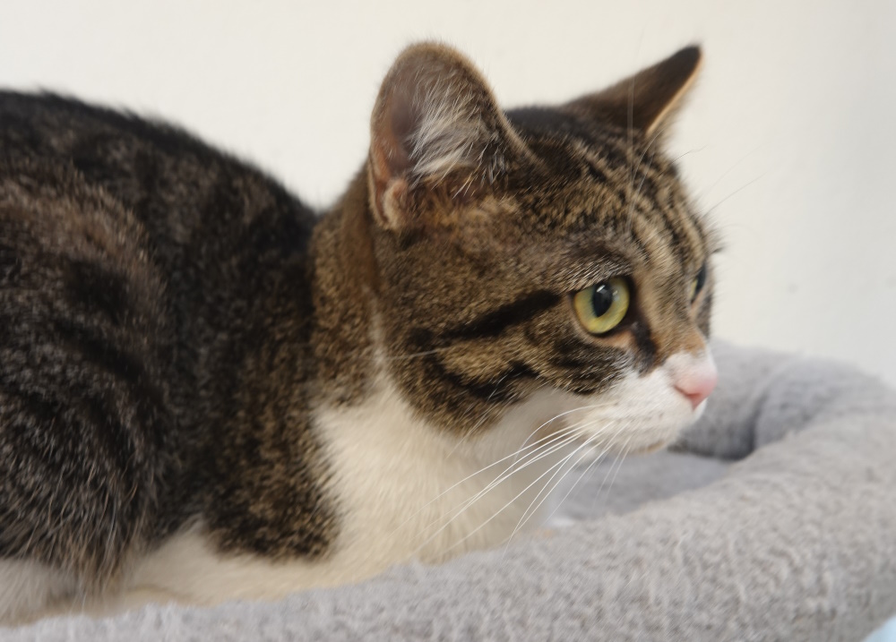 Toffifee ist eine liebenswerte junge Katzenlady, die leider schon viel Pech in ihrem Leben hatte. Zunächst ist sie als Fundtier zu uns ins Tierheim gekommen ist und war weder kastriert noch gechippt, so, wie es eigentlich seit Einführung der Katzenschutzverordnung im Jahr 2019 Pflicht ist. Dies wurde natürlich zwischenzeitlich nachgeholt. Im Vermittlungszimmer hat sie deutlich gezeigt, dass sie es nicht leiden kann, wenn ihr Artgenossen allzu dicht auf den Pelz rücken, aber wer möchte schon von Fremden bedrängt werden ;-) Daher wird Toffifee nur als Einzelkatze vermittelt.