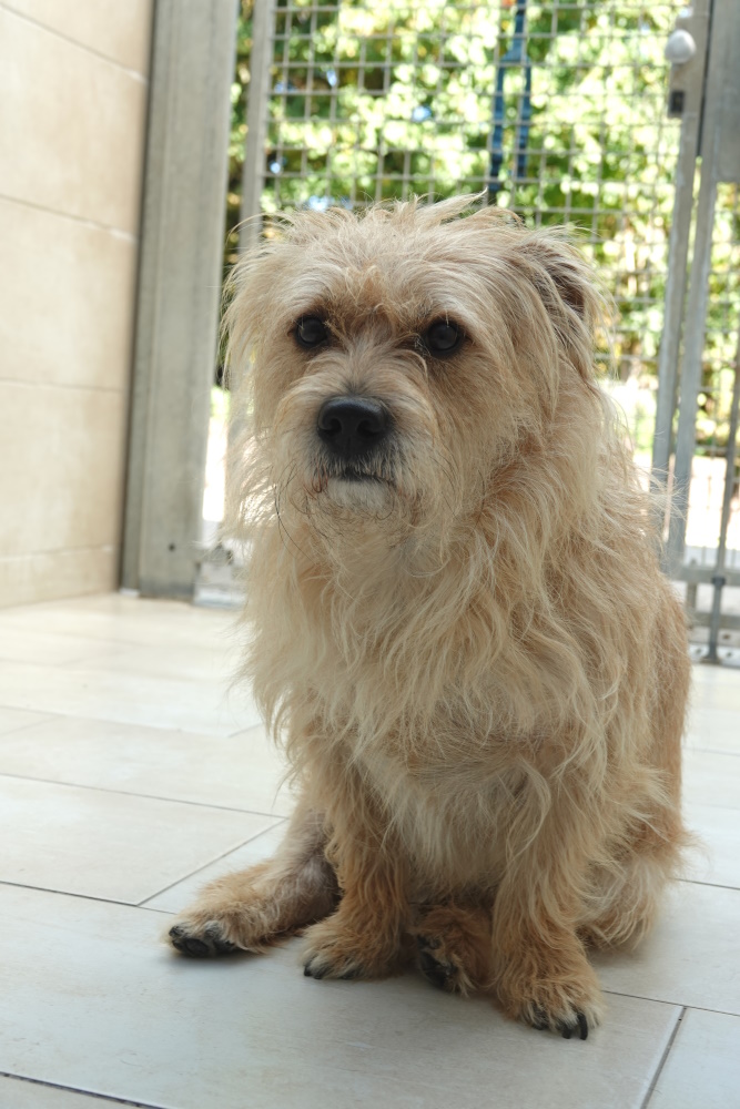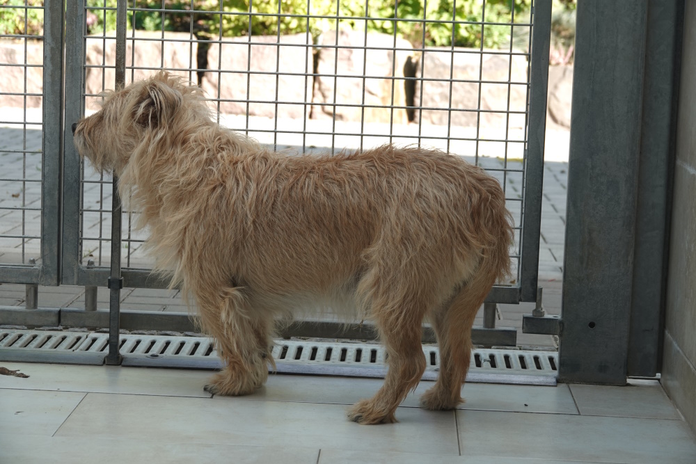 Benji ist ne wirklich arme Socke und zur Zeit noch völlig durch den Wind. Wir haben ihn vor einigen Jahren an ein Ehepaar vermittelt. Erst erkrankte sein Frauchen und musste ins Heim, nun kann auch sein Herrchen nicht mehr für sich sorgen und aus der Familie kann sich scheinbar niemand um den armen Kerl kümmern. Nun hat er nicht nur seine beiden Bezugspersonen, sondern auch sein Zuhause, sein gewohntes Umfeld verloren und kann es gerade gar nicht verstehen. Dass Herrchen sich in letzter Zeit nicht mehr richtig um ihn kümmern konnte, sieht man Benji auch an. So trägt er ein wenig zu viel Hüftgold mit sich herum und er sieht ein bisschen zersauselt aus. Aber das sind reine Äußerlichkeiten. Viel wichtiger ist sein seelischer Gemütszustand: Benji braucht ein bisschen Zeit, um anzukommen. Er würde vermutlich sich als Einzelprinz in einem eher ruhigen Umfeld am wohlsten fühlen. Vielleicht gibt es ja ein rüstiges Ehepaar im Ruhestand, die einen Begleiter bei ihren täglichen Spaziergängen suchen oder eine alleinstehende Einzelperson, die sich über Gesellschaft eines kernigen Typen freut, der die Sturm-und-Drang-Zeit zum Glück hinter sich hat und sich im besten Hundealter befindet.
