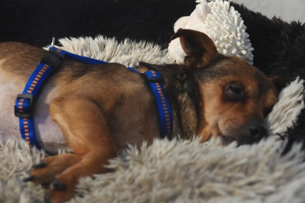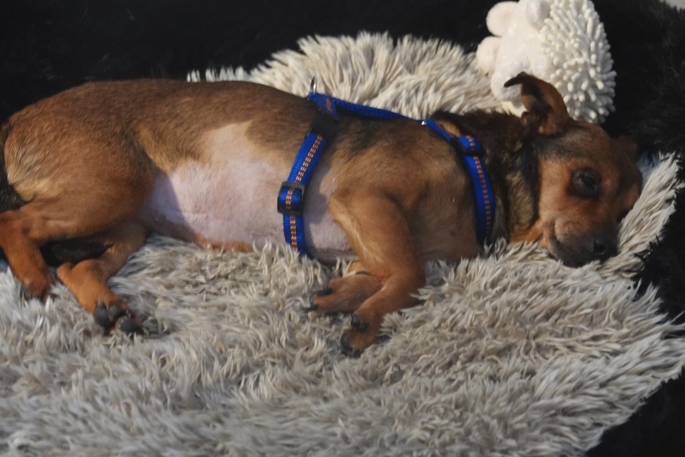 Mela ist eine absolut freundliche und liebe, menschenbezogene Hündin, die wir aus unserem ungarischen Tierheim in Kiskunhalas übernommen haben. Sie lebte an einer Tankstelle, bevor sie über den städtischen Hundefänger in unser Tierheim gekommen ist. Mela ist einfach nur lieb, bescheiden und dankbar. Sie verträgt sich sehr gut mit Artgenossen beiderlei Geschlechts und ist froh, wenn sie ein kuscheliges Körbchen ihr eigen nennen darf. Im Tierheim wurde festgestellt, dass sie Diabetes hat. Sie bekommt ein Spezialfutter und muss zweimal täglich einen kleinen Pieks kriegen. Dies lässt sie sich aber völlig problemlos gefallen. Zur Zeit leidet sie unter tränenden Augen und bekommt zweimal täglich Augentropfen.