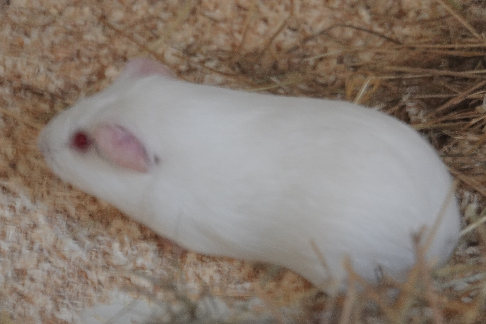 Snowy ist ein junges Meerschweinchen-Mädel, das zusammen mit einem etwas älteren Meeri-Böckchen und ihrer Schwester Peanut aus persönlichen Gründen abgegeben wurde. Allen drei Tieren ist gemeinsam, dass sie extrem scheu sind und vermutlich nicht viel Menschenkontakt hatten. Daher suchen wir für Peanut ein artgerechtes Zuhause-für-immer bei Meerschweinchen-Freunden, natürlich nicht in Einzelhaltung, sondern in Gesellschaft von mindestens einem Artgenossen. Es wäre natürlich auch denkbar, dass Snowy gemeinsam mit ihrer Schwester und/oder ihrem großen Bruder (?) oder Vater (?) Minnie in ihr neues Zuhause umzieht.