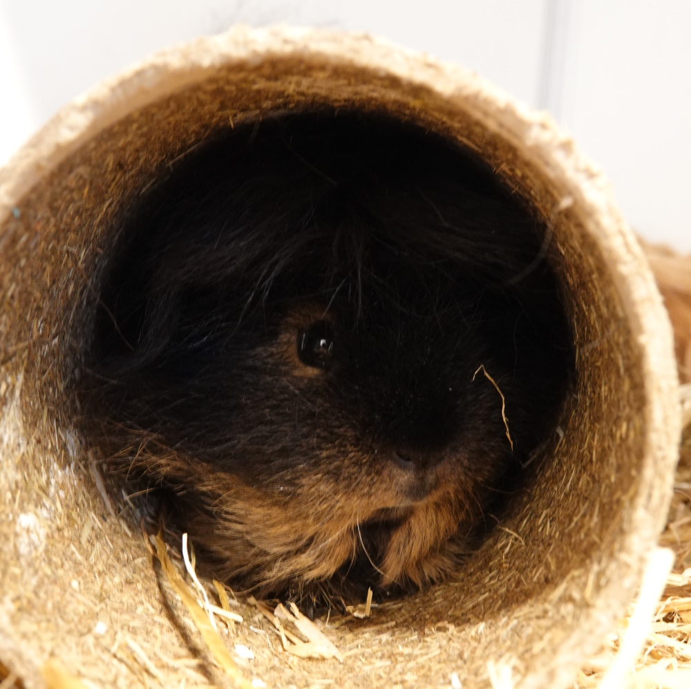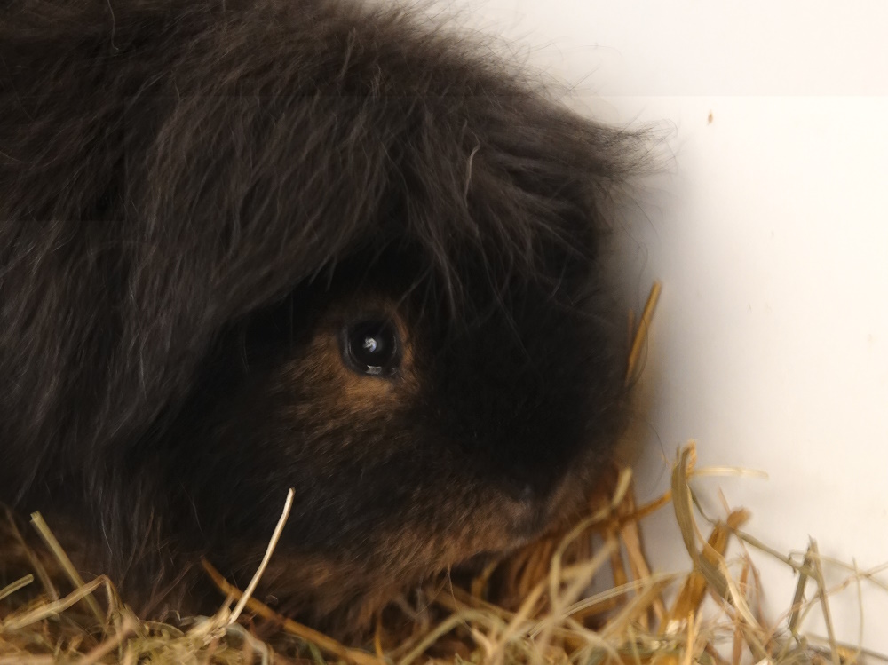 Wuschel wurde uns zusammen mit seinem Kumpel Bommel Anfang November von der Stadtpolizei gebracht. Die beiden standen mit Sack und Pack, sprich einem Kleintierkäfig und einer Plastiktüte mit den traurigen Überresten einer Meerschweinchenhaltung vor dem Zoo Rammelsberg, offensichtlich von ihren Besitzern ausgesetzt.
