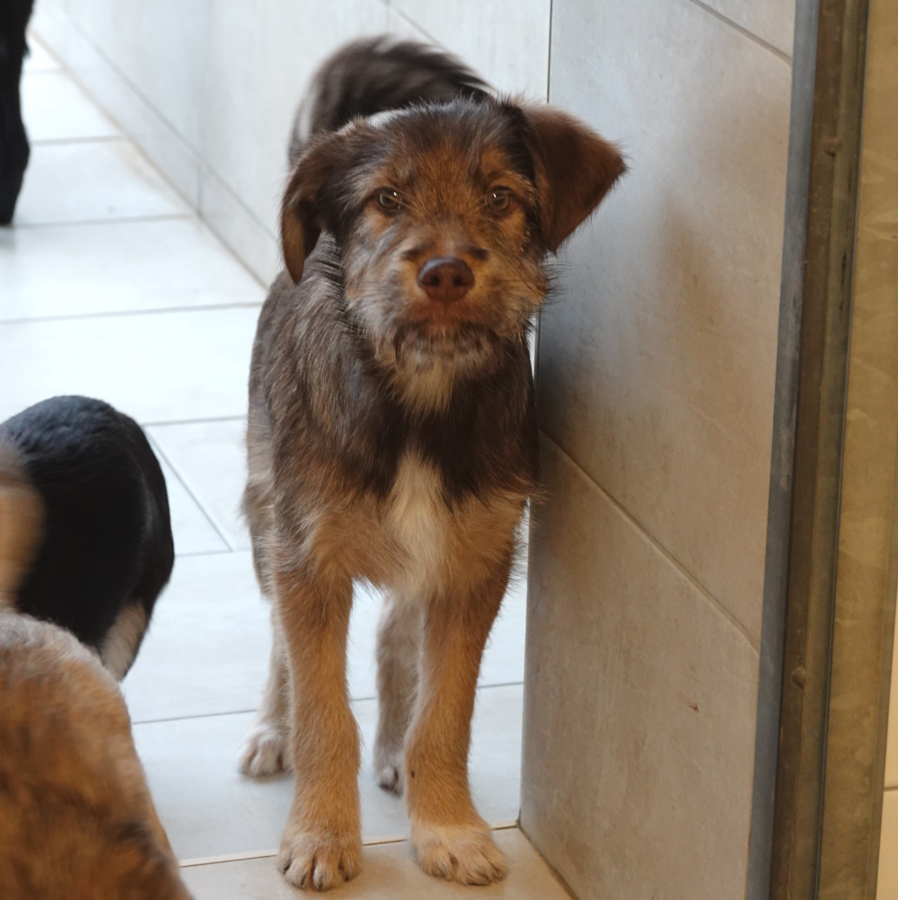 Bruno ist zwar der Größte in seiner Gruppe, ist aber noch sehr schüchtern und zurückhaltend und braucht Zeit, bis er sich an eine neue Umgebung und neue Menschen gewöhnt hat. wir sind uns sicher, dass er, wenn er einmal Vertrauen gefasst hat, sich zu einem anhänglichen Begleiter auf vier Pfoten entwickelt. Wir suchen für Bruno ein liebevolles Zuhause bei Hundefreunden mit Einfühlungsvermögen und viel Zeit, die Freude daran haben, einem Jungspund all das beizubringen, was er im Leben wissen muss. So muss Bruno natürlich noch das ganze Hunde-ABC lernen