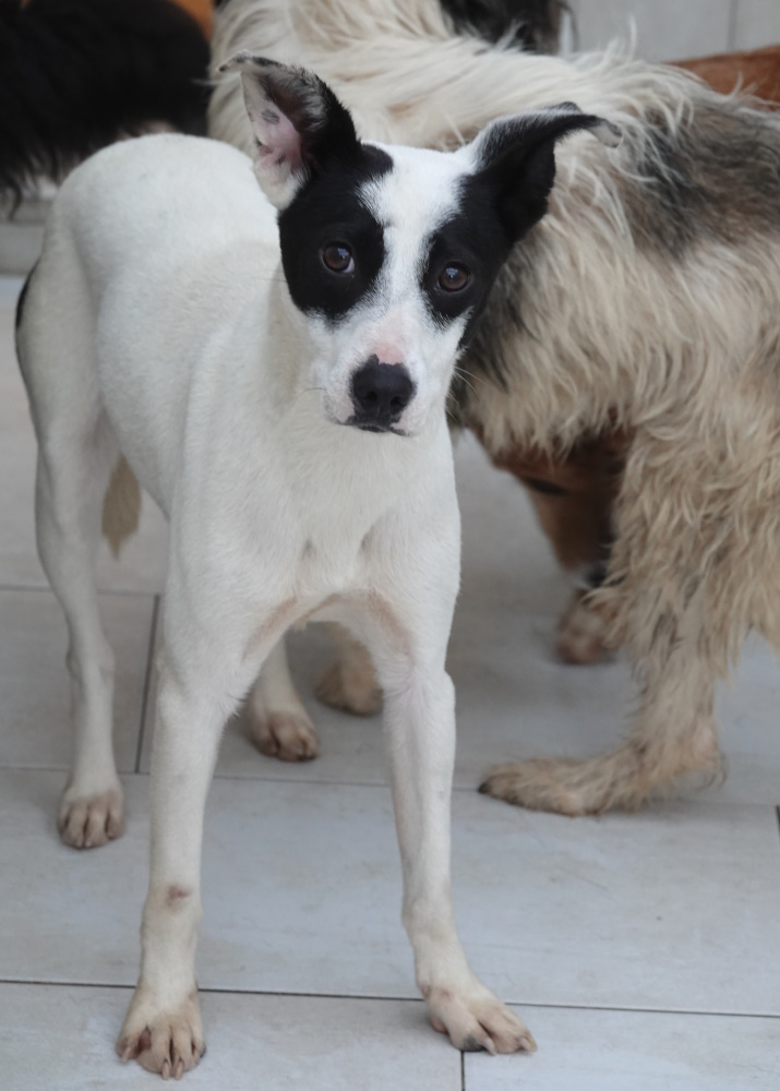 Rita zeigt sich sehr vorsichtig und schüchtern bis ängstlich, ohne dabei aber noch vorne zu gehen. Rita versucht, sich möglichst unauffällig zu verhalten. Dies kann natürlich ihre Überlebensstrategie auf der Straße gewesen sein. Sie braucht mit Sicherheit ein bisschen Zeit, bis das Eis gebrochen ist, aber sie zeigt sich durchaus auch interessiert und neugierig, so dass wir einfühlsame Hundefreunde mit Erfahrung, Zeit und Geduld für Rita suchen, die ihr Vertrauen und Sicherheit vermitteln. Wir sind uns sicher, dass sie sich zu einer ganz liebenswerten und anhänglichen Hündin entwickeln wird. Ein souveräner und mutiger Ersthund könnte ihr den Einstieg in ein normales Hundeleben enorm erleichtern ;-) Vermutlich fühlt sie sich in einem eher ruhigen Haushalt ohne Kinder am wohlsten.