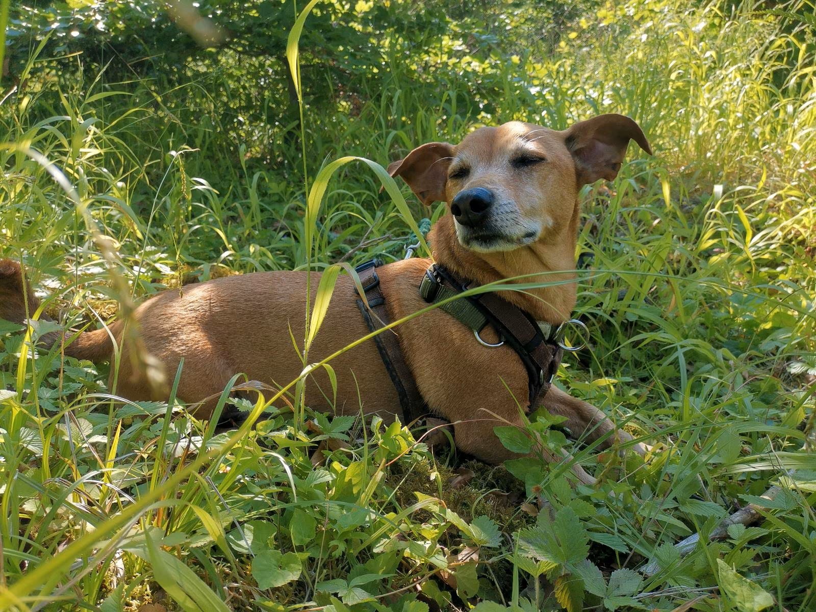 Sie beherrscht die Grundkommandos, kann grundsätzlich sehr gut an der (Lauf-)Leine gehen außer bei Hundebegegnungen.