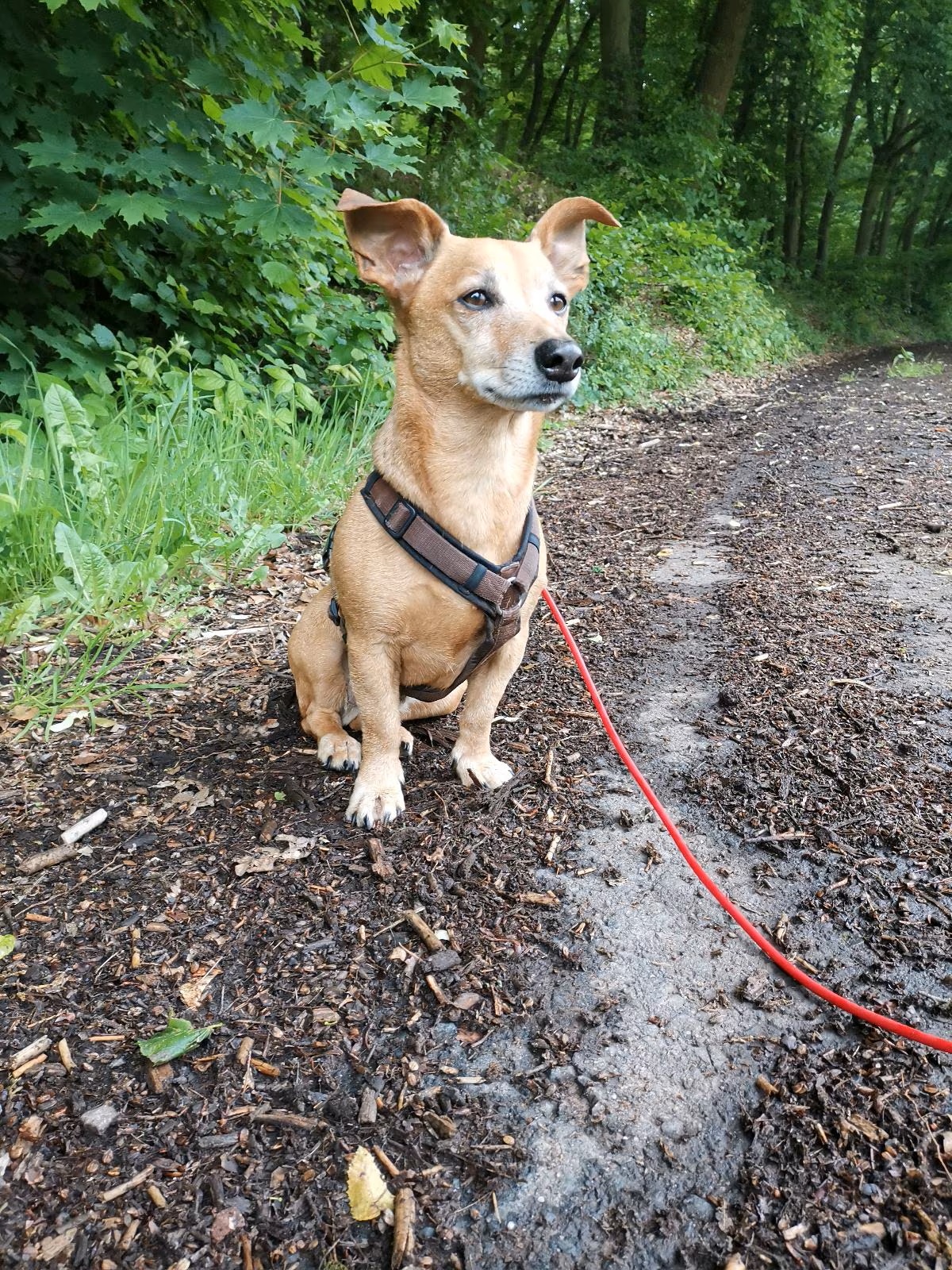 Gassigänge sind mit Dino nicht ganz unproblematisch, da er sehr reaktiv an der Leine ist und vor allem bei Hunden und Katzen ausrastet. Wenn er aufgeregt ist, zieht er an der Leine und zwar mit Terrierkraft, ansonsten bekommt man ihn auch zu einem langsameren Tempo überredet. Als Dackel Jack Russell hat er natürlich Jagdtrieb.