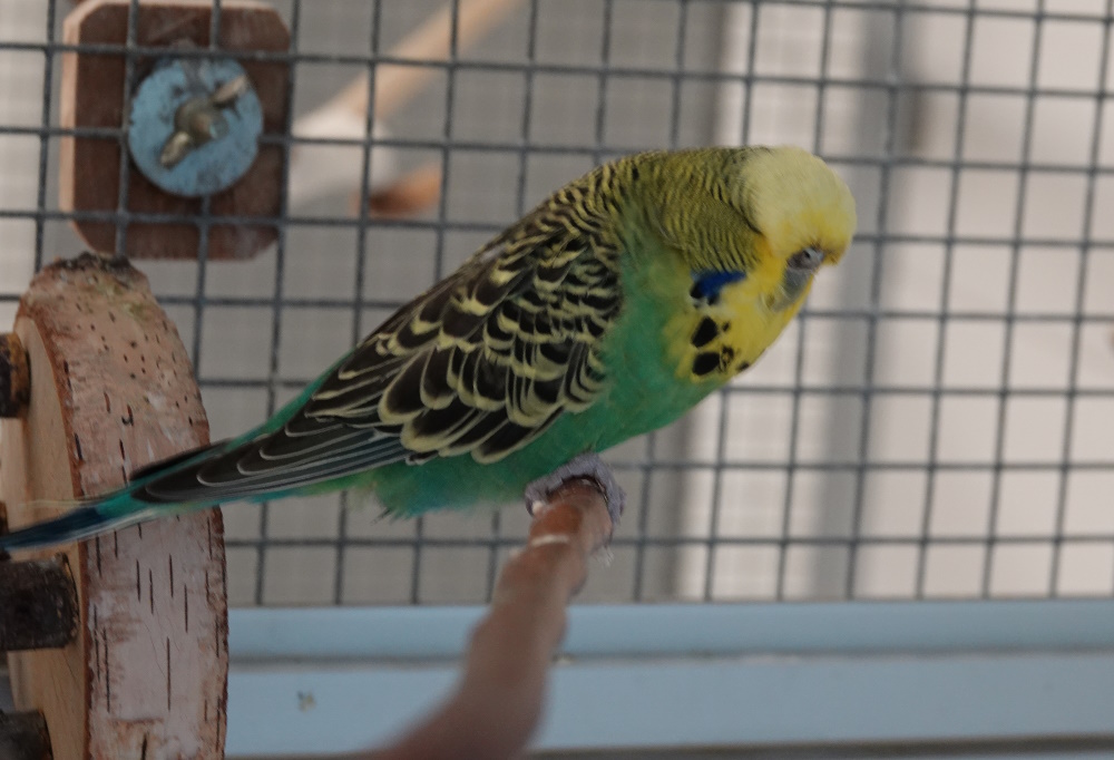 Brazil ist ein reizender Wellensittich-Hahn, der als Fundvogel im Tierheim abgegeben wurde, nachdem er plötzlich vor der Haustür der Finderin saß. Bisher hat sich noch niemand gemeldet, der ihn vermisst. Anfangs dachten wir, dass er Probleme mit den Augen hat, aber es liegt an der Zucht und die Federn sind so um die Augen gewachsen, dass man diese kaum sehen kann - und umgekehrt Brazil wohl auch nicht. Man lernt nie aus, oder?